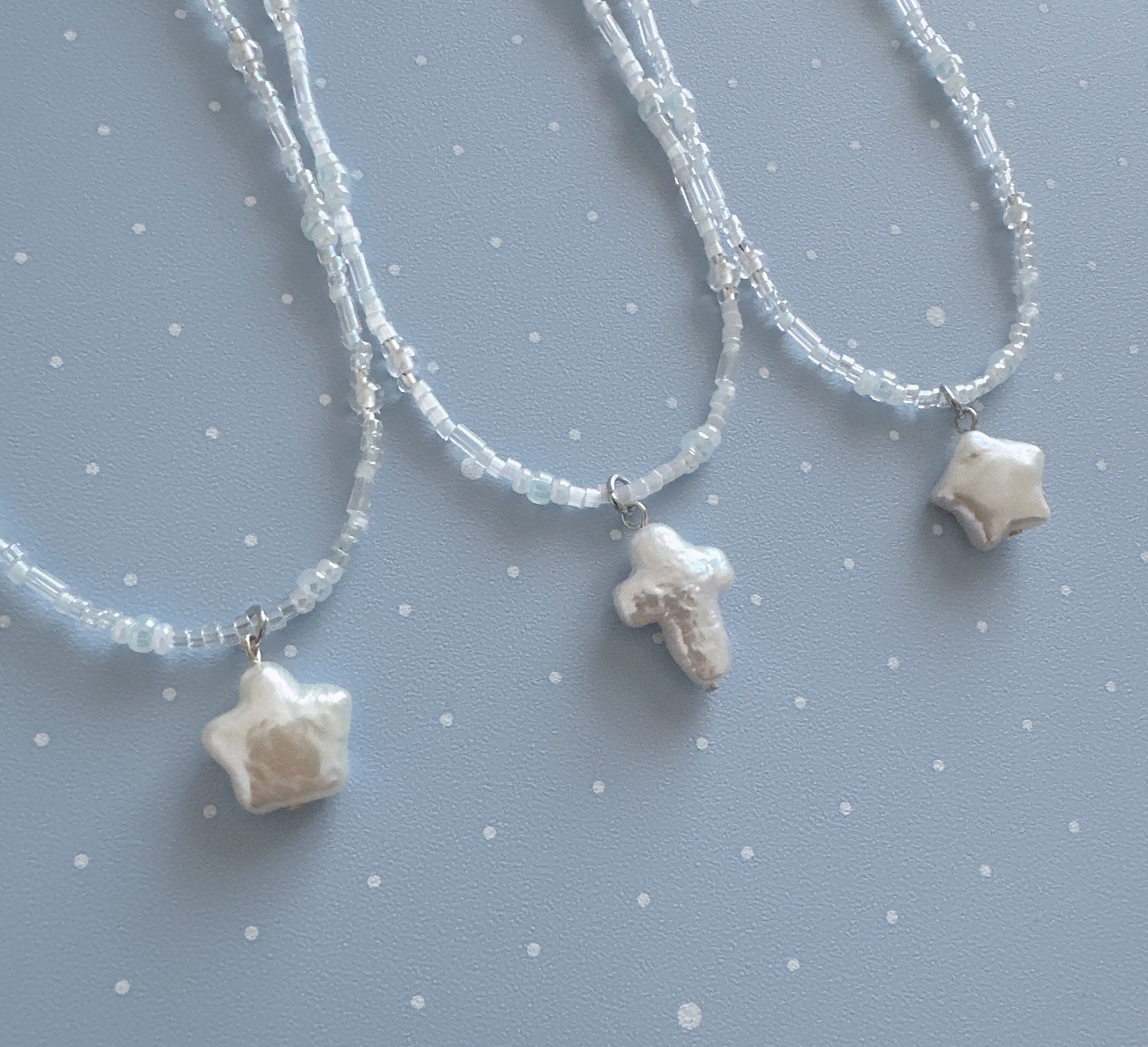 つるんとかわいい淡水パールをネックレスにしました✩︎⡱