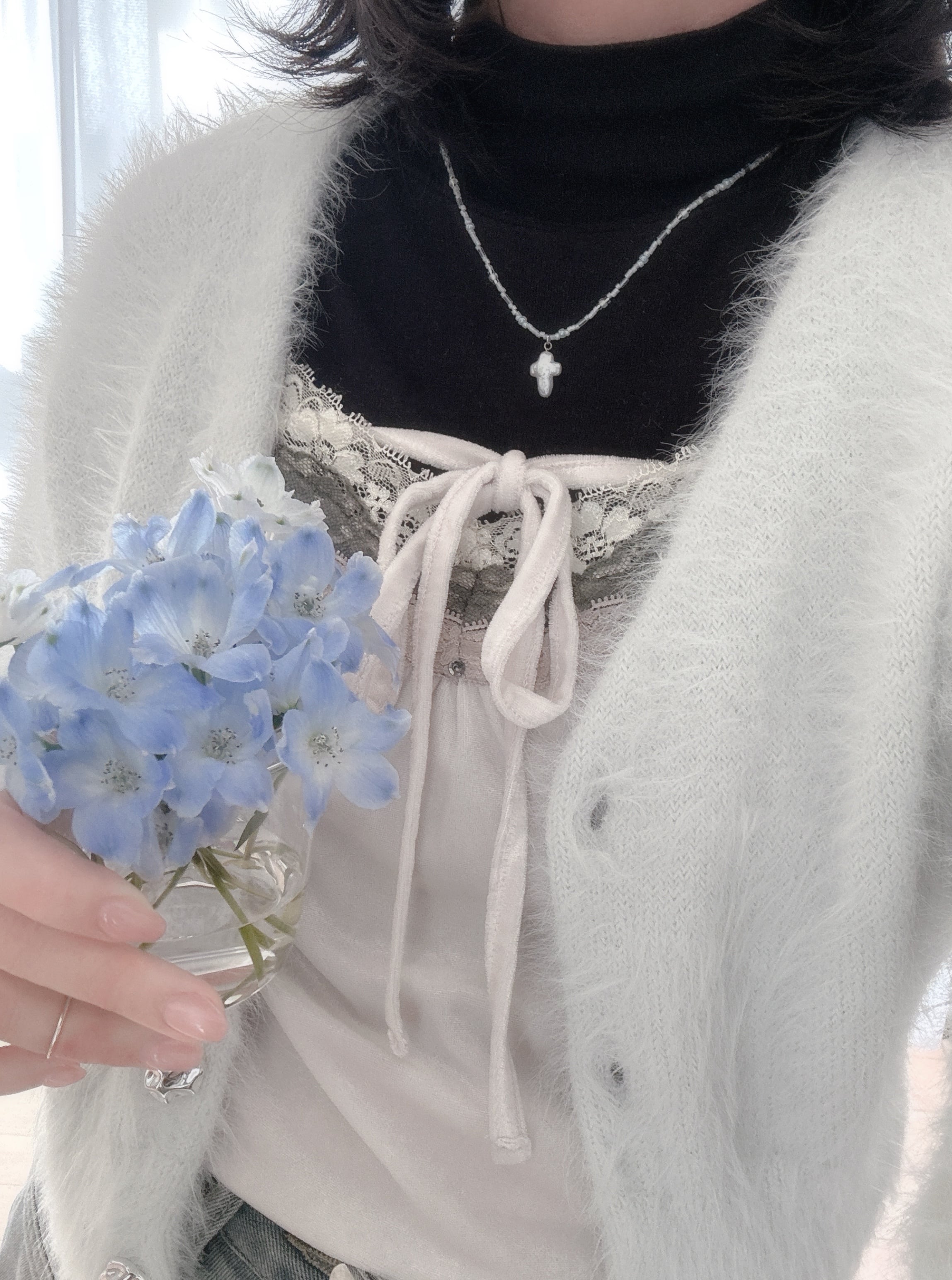 ひとつひとつ手作業でビーズを通し、まるでさざなみのように繊細な雰囲気のチェーンになりました♪
