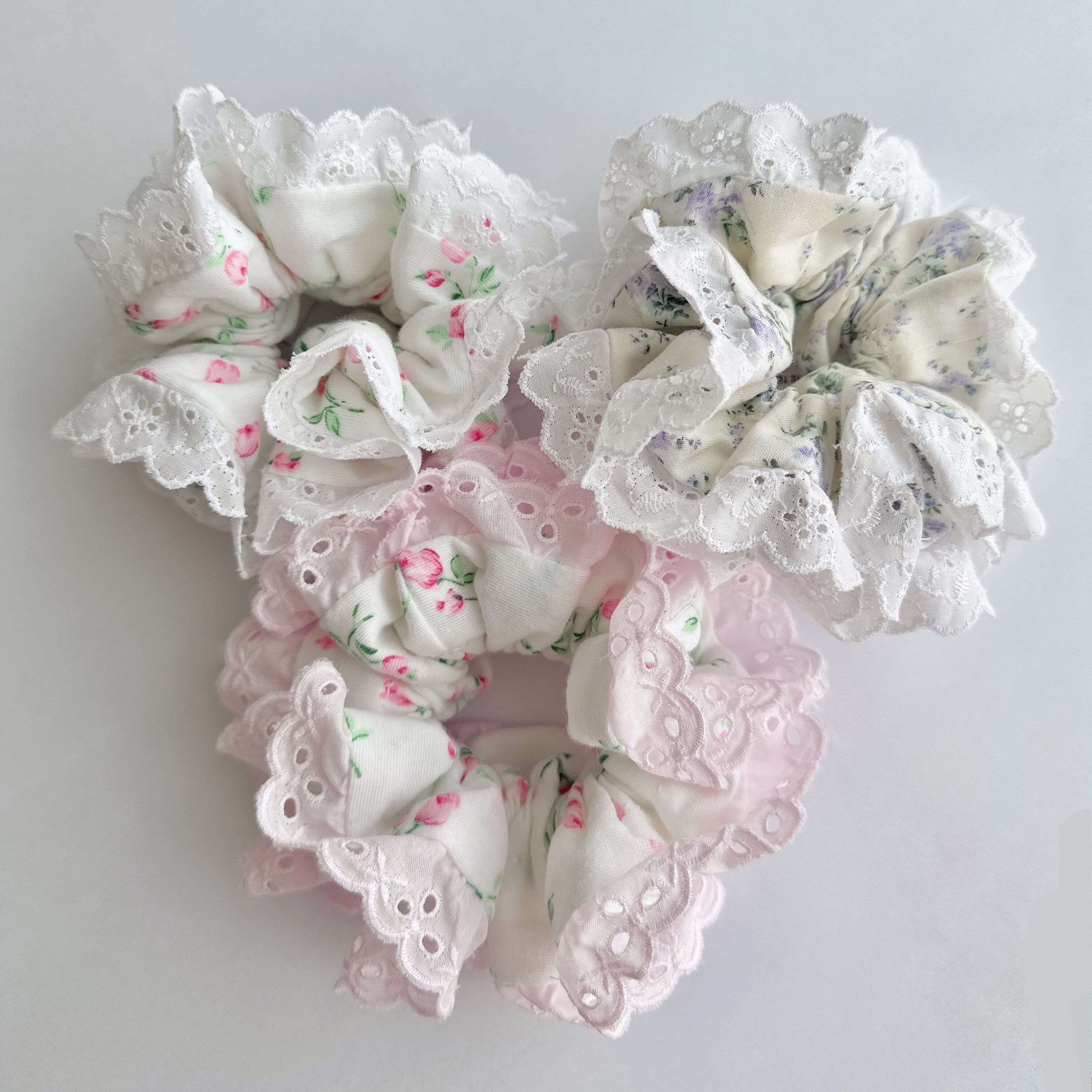 春らしいコットン素材のレースを使用したボリュームたっぷりのシュシュ♡